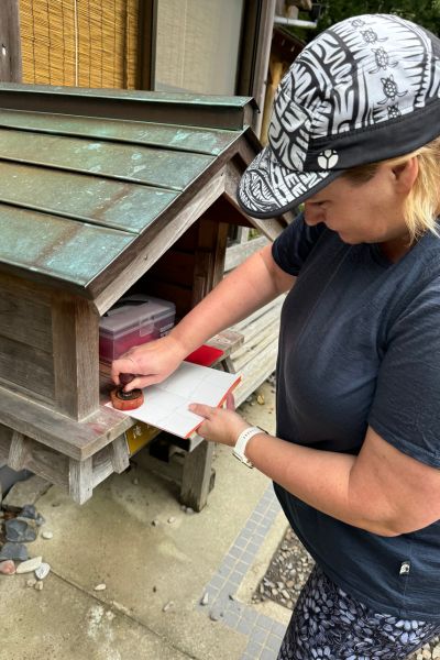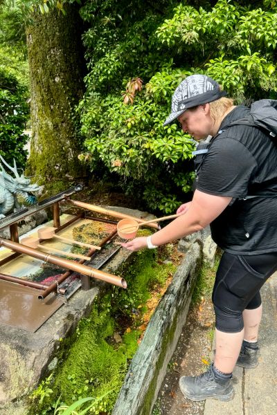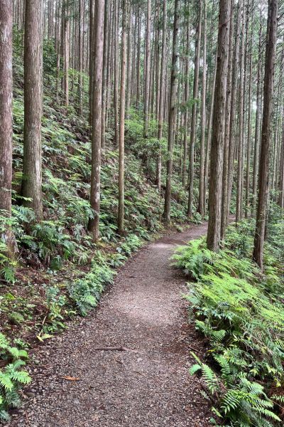 Our second morning began in gentle rain, but was quickly caught by the forest canopy, and within minutes my rain jacket was tucked away. The trail was varied – steep climbs, long descents, bubbling streams and verdant ferns, bursts of flowers in village gardens. We took our time stamping our booklets and enjoying snacks, and before I realised it, the day’s walk was behind us. Entering Hongu Taisha from the path at the back felt surreal – like stepping through the tradesman’s entrance of a sacred world. I felt strangely self-conscious, sweaty and smelly after a day of hiking. It didn’t feel right to step into such a sacred place in that state, so I waited until the next day to visit – clean, refreshed, ready to give it the reverence it deserved. Completing a 2-day walk into Hongu is considered completing the Kumano pilgrimage. Many hikers extend their journeys by combining different routes, but this traditional 2-day path remains the heart of the experience.