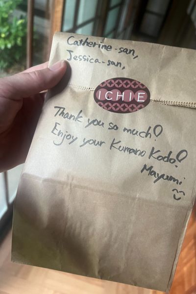 Our journey began with a train ride south from Osaka to Kii-Tanabe, where we collected our information packs from the friendly visitor centre. Just down the road we checked into Ichie Café, a small and welcoming guesthouse. Handwritten notes from our hosts greeted us with such warmth – it instantly set the tone for the days ahead. Dinner at Akihei in Tanabe was another highlight, with a beautifully prepared meal that nourished both body and spirit before our pilgrimage began.