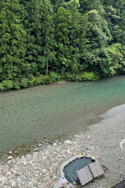 On our rest day we stayed at a hotel built right beside the river, a favourite getaway spot for Japanese tourists on spa holidays. The onsen here was the highlight – natural hot spring pools dug into the riverbank itself, steaming gently in the cool mountain air. Guests changed into yukata before heading down to the baths, where you could choose between two pools at different temperatures, just metres from the river itself. It was the perfect way to spend a non-hiking day: soaking tired muscles, watching the river slide past, and sharing the experience with families and holidaymakers who had come here simply to relax. It felt like stepping into a cherished local tradition, one that refreshed both body and spirit.