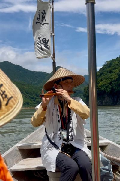 From Hongu, we continued our pilgrimage in a traditional style – by boat. Gliding along the Kumano-gawa river with a guide, flute music drifting in the air, and even a rock scramble mid-journey, it was a gorgeous way to connect with centuries of history. Our journey came to a symbolic end at Hayatama Taisha Shrine in Shingu. This vibrant vermilion shrine is one of the three Grand Shrines of Kumano and an important part of the Kumano Kodo pilgrimage.