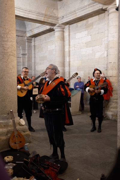 In the evening, take time to wander Santiago’s atmospheric old town. Cobbled laneways twist and turn through centuries-old stone buildings, leading you past hidden squares and tucked-away taverns. The Praza do Obradoiro comes alive at sunset, often filled with overjoyed pilgrims taking celebratory photos, guitar-playing buskers, opera singers, and street performers of all sorts. Grab a seat on the steps and simply take it all in. It’s the perfect way to end your first day.