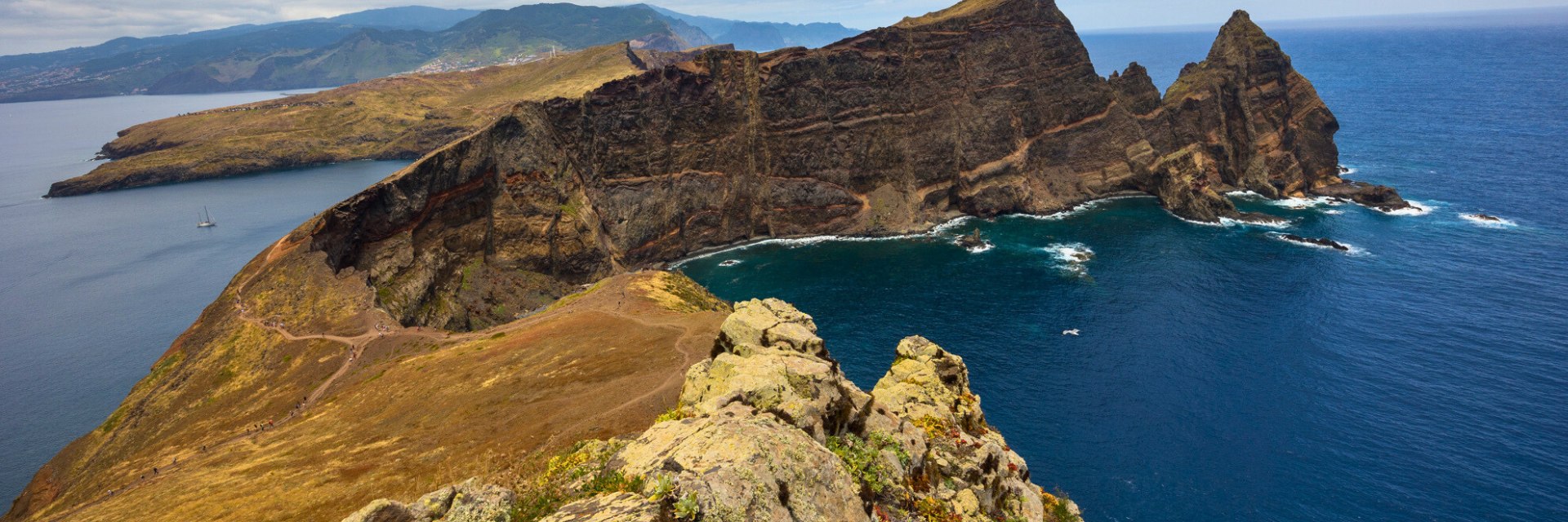End your journey at the wild eastern tip of Madeira and arguably its most geologically interesting part. Walking the Ponta de São Lourenço trail feels like stepping into another world compared to the rest of Madeira. Instead of lush Laurissilva forest or levada corridors, here you traverse a narrow volcanic peninsula of rugged cliffs, wind-sculpted headlands and dry, semi-arid landscapes. The vegetation is sparse with low shrubs, hardy grasses and endemic plants adapted to salt spray and wind. Along the way, you pass viewpoints where the cliffs plunge into the Atlantic, revealing dramatic rock formations in shades of red, brown and gold. This is one of the oldest exposed parts of Madeira’s volcanic structure. The barren, rocky terrain is a result of eroded volcanic tuffs and basalts, with dramatic evidence of the island’s fiery birth millions of years ago. Be warned that the path is fully exposed to sun and wind, winding up and down ridges with constant ocean views.