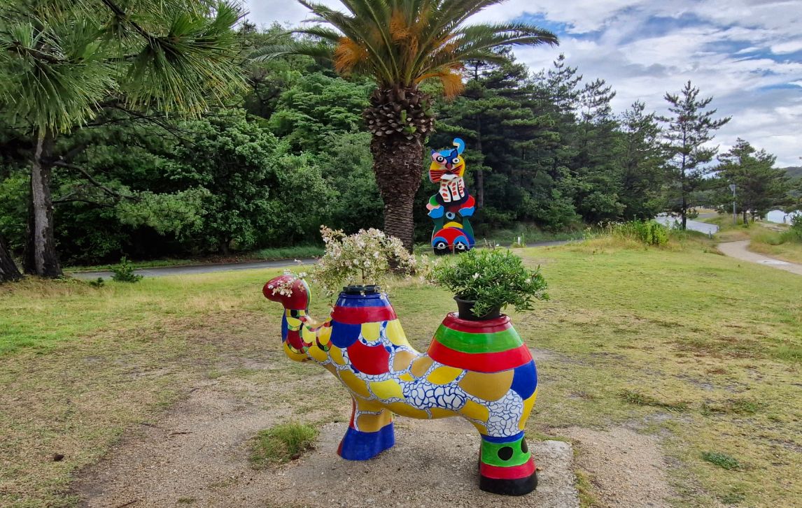Arrive in Uno, the port area of Tamano City and the main gateway to the Setouchi art islands. Take some time to wander the waterfront, where you’ll encounter striking art installations, such as the giant fish sculpture, an iconic landmark of Uno and the Goddess of Love statue at Uno Port. These works serve as a fitting introduction to the creativity that awaits on the islands.