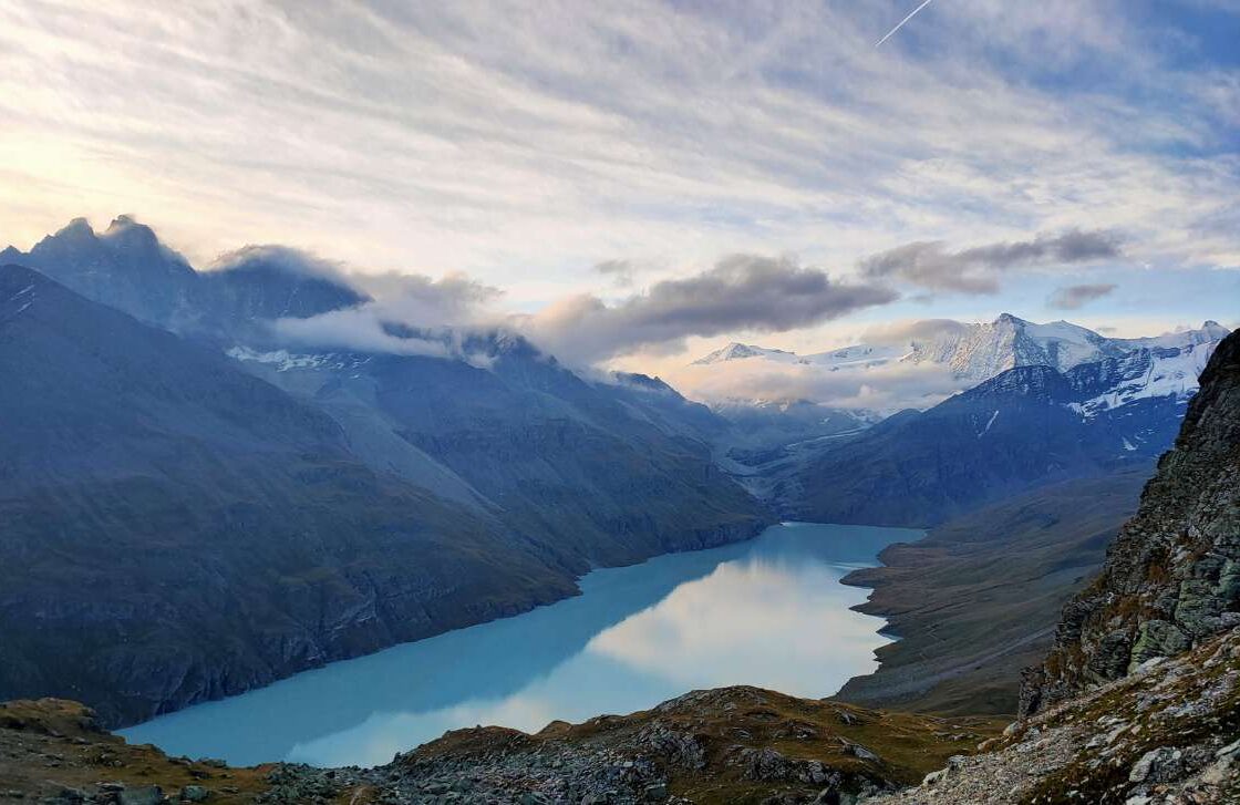 A difficult but stunning day! We will start the day with a climb to Louvie pass (2921m), then cross the limestone plateau of the Grand Désert, at the foot of La Rosa Blanche summit. Passing by receding glaciers and mountain lakes we will cross barren rocks, tumbling moraines and glacial streams before making our way to the Prafleuri pass (2987m). To finish the day we will descend to Combe de Prafleuri and Grande Dixence via cable car where we will spend the night. Overnight Hotel du Barrage.