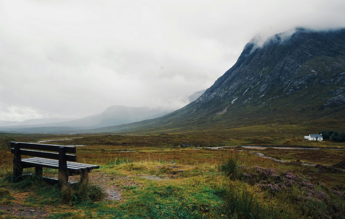 Kingshouse sits among some of the Highlands’ most dramatic scenery and today the trail unfolds into one of its most beautiful stretches of the entire walk. Ahead you can see Buachaille Etive Mor, one of the most famous mountains in Glencoe, whose Gaelic name means ‘the great herdsman of Etive’.